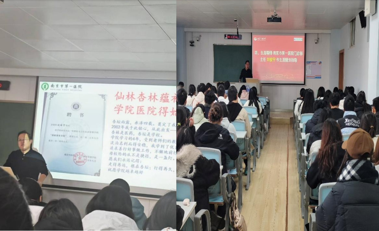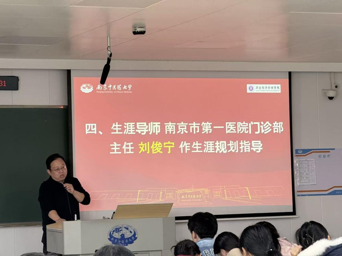 随后,在专题讲座中,刘主任结合个人求学与工作经历,围绕医疗行业发展趋势、职业能力构建与人生价值实现等维度展开讲解。他分析了当前医疗系统就业市场的结构性变化,指出医疗服务流程优化、互联网医疗等新兴领域蕴含重要发展机遇。刘主任特别提醒同学们要关注行业前沿动态,提前做好知识储备和能力锻炼。
