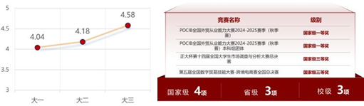 为破解班级学习与竞赛困境,创新推出“两组一课”模式——专项学习小组、科研竞赛小组与学霸小课堂,通过朋辈引领、学长学姐经验分享等定向帮扶,带动班级平均绩点从2.45提升至3.64;竞赛实现从0到1的突破,累计获60余项,国家级29项,国省级大创5项。