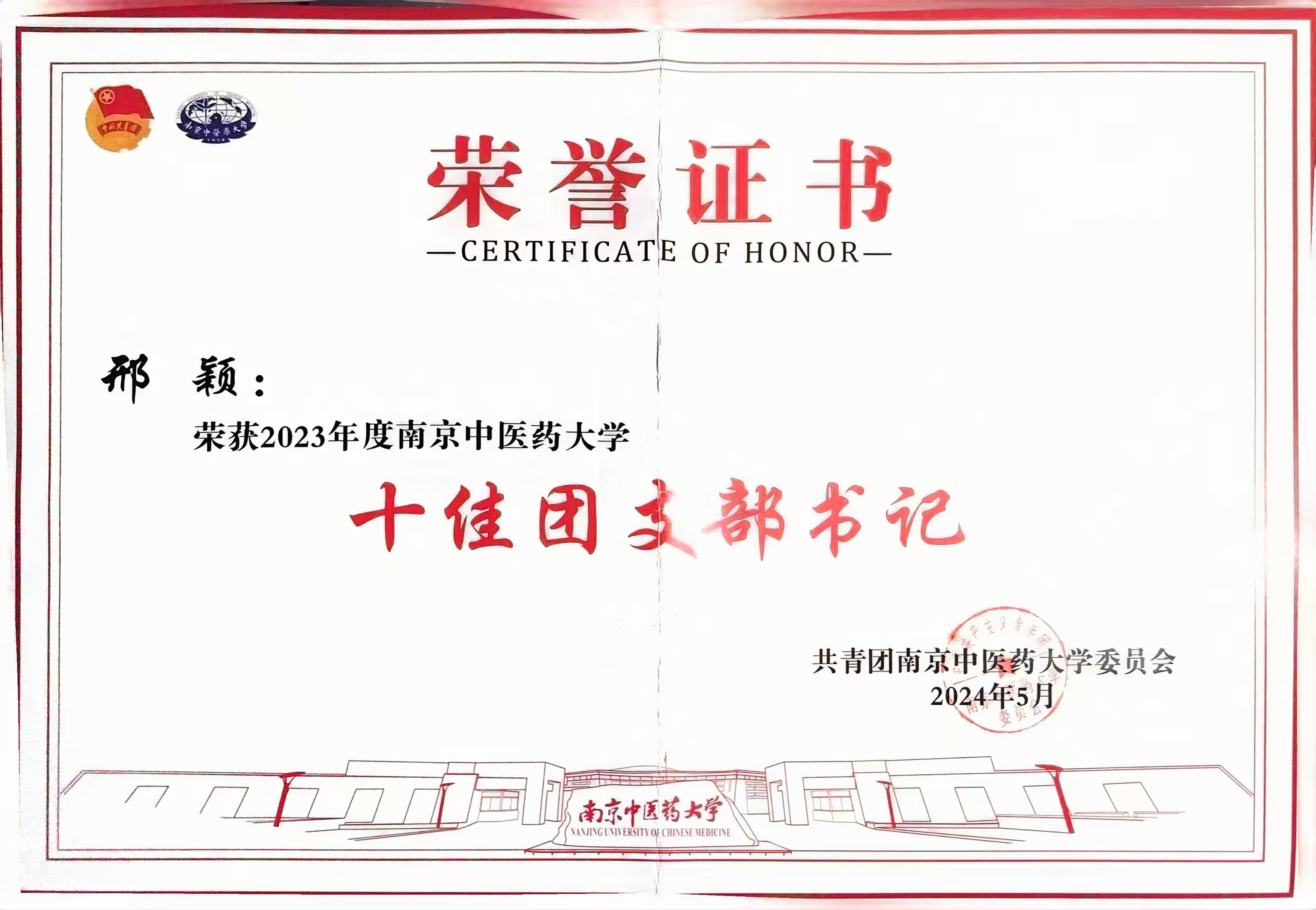 邢颖同学严于律己,连续三年绩点、综测均为专业第一,累计获国家奖学金等21项荣誉,2项大创,10项各级各类学科竞赛奖项,最终推免至中国药科大学。