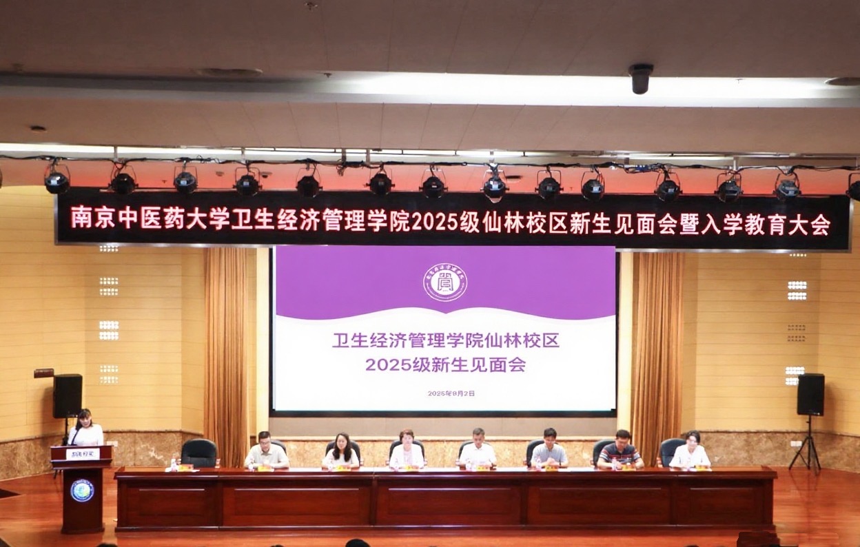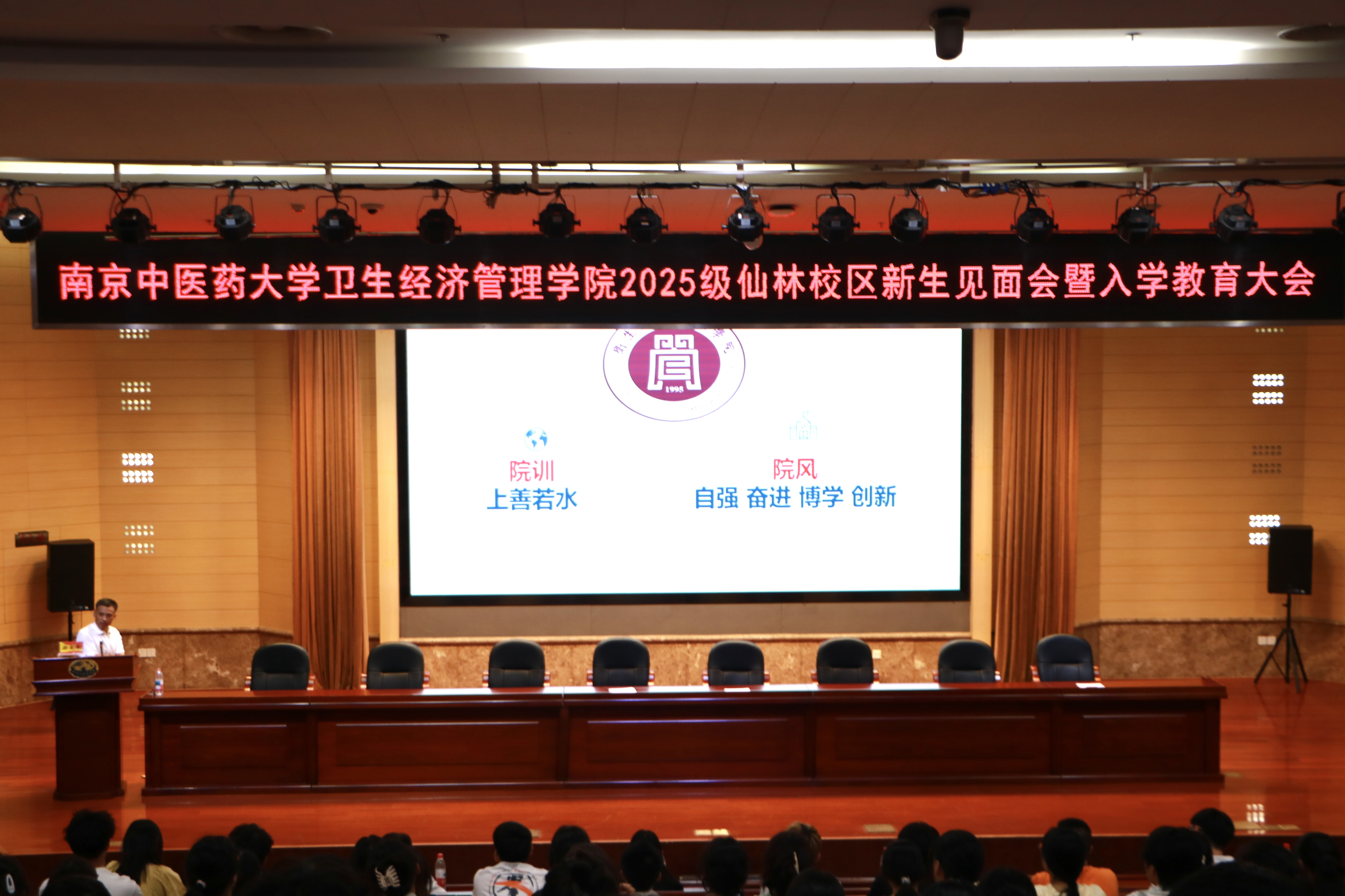 莘莘学子至,济济一堂启新程;煌煌学府情,谆谆寄语托厚望。2025年9月2日上午,卫生经济管理学院2025级仙林校区新生见面会暨入学教育大会在丰盛楼报告厅隆重举行。学院党委书记王红云老师,院长徐爱军老师,副院长钱爱兵老师,公共事业管理系主任张瑞利老师,药事管理系主任杨勇老师,信息管理系主任谢靖老师,大数据管理系副主任邓敏老师,2025级学业导师、辅导员及全体本科新生参会。大会由学院党委副书记、副院长沈静老师主持。