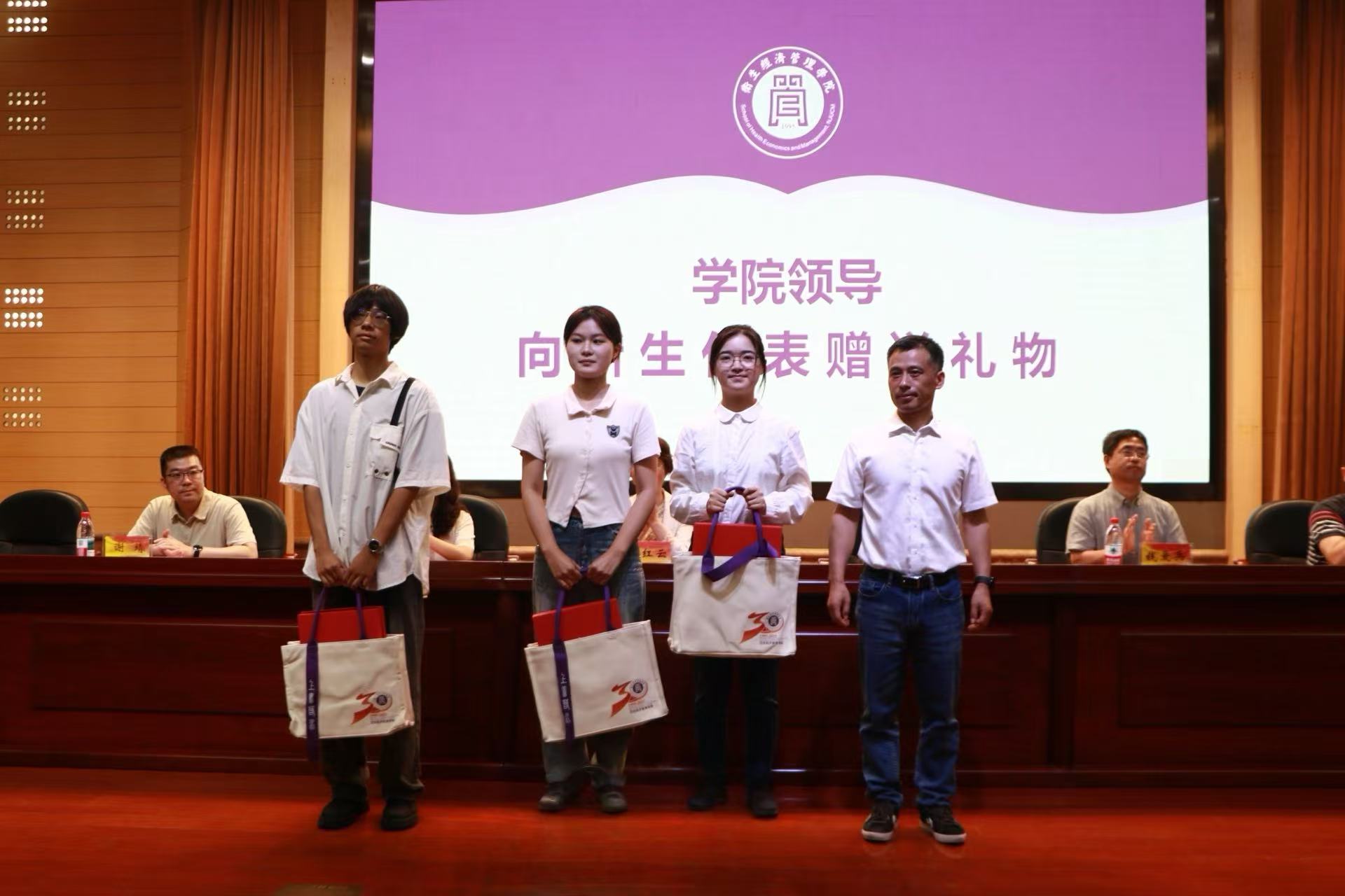 卅载迎新,共赴新程;薪火相传,赓续前行。学院院长徐爱军老师向三位新生代表赠送礼物,寄望青春力量接续奋斗、勇担使命。随后,全体师生齐声高唱校歌,在悠扬的旋律中凝聚共识、熔铸信念。