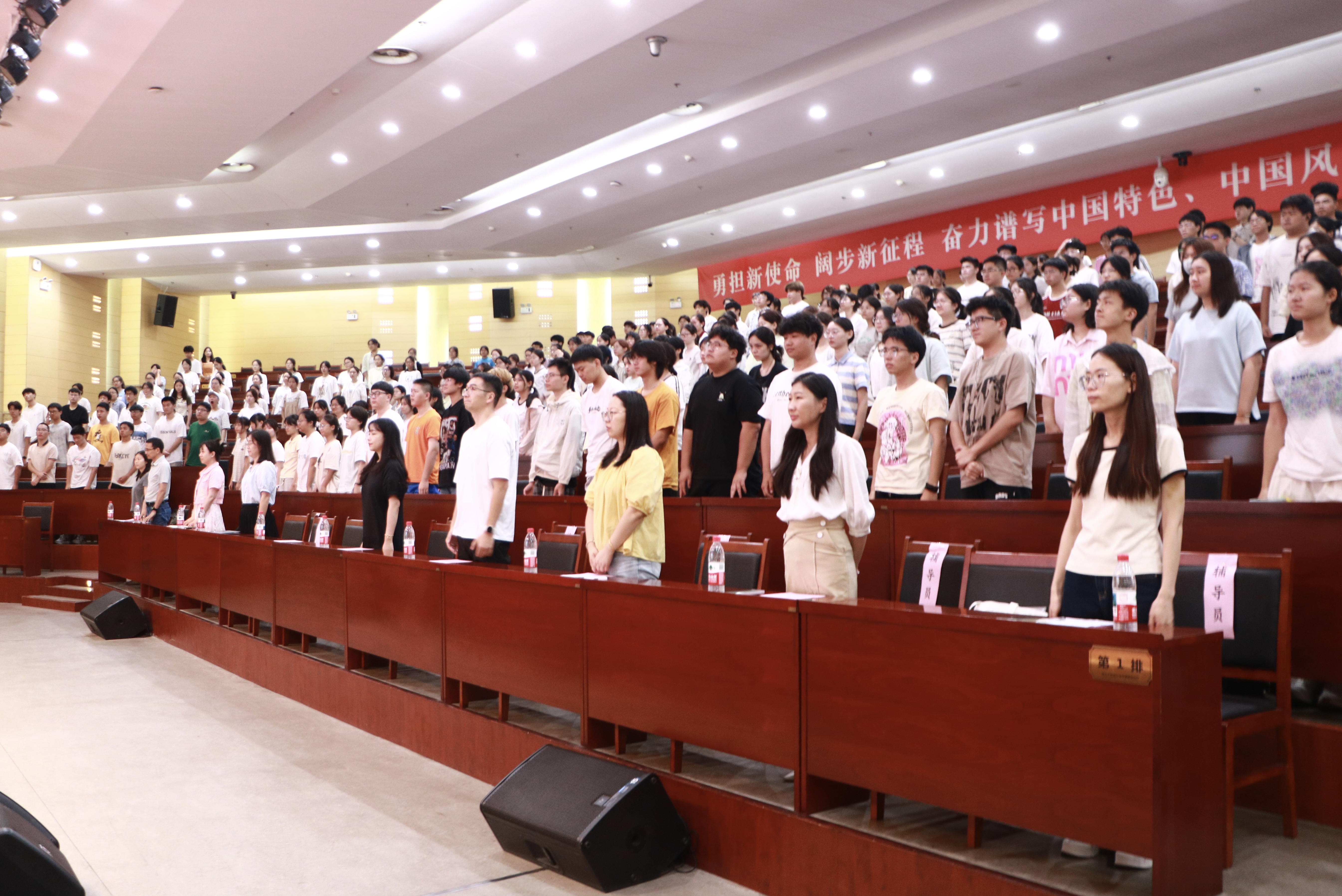 大会在庄严的国歌声中拉开帷幕,全体师生肃立齐唱,用铿锵歌声应和时代脉博,开启大学新征程。