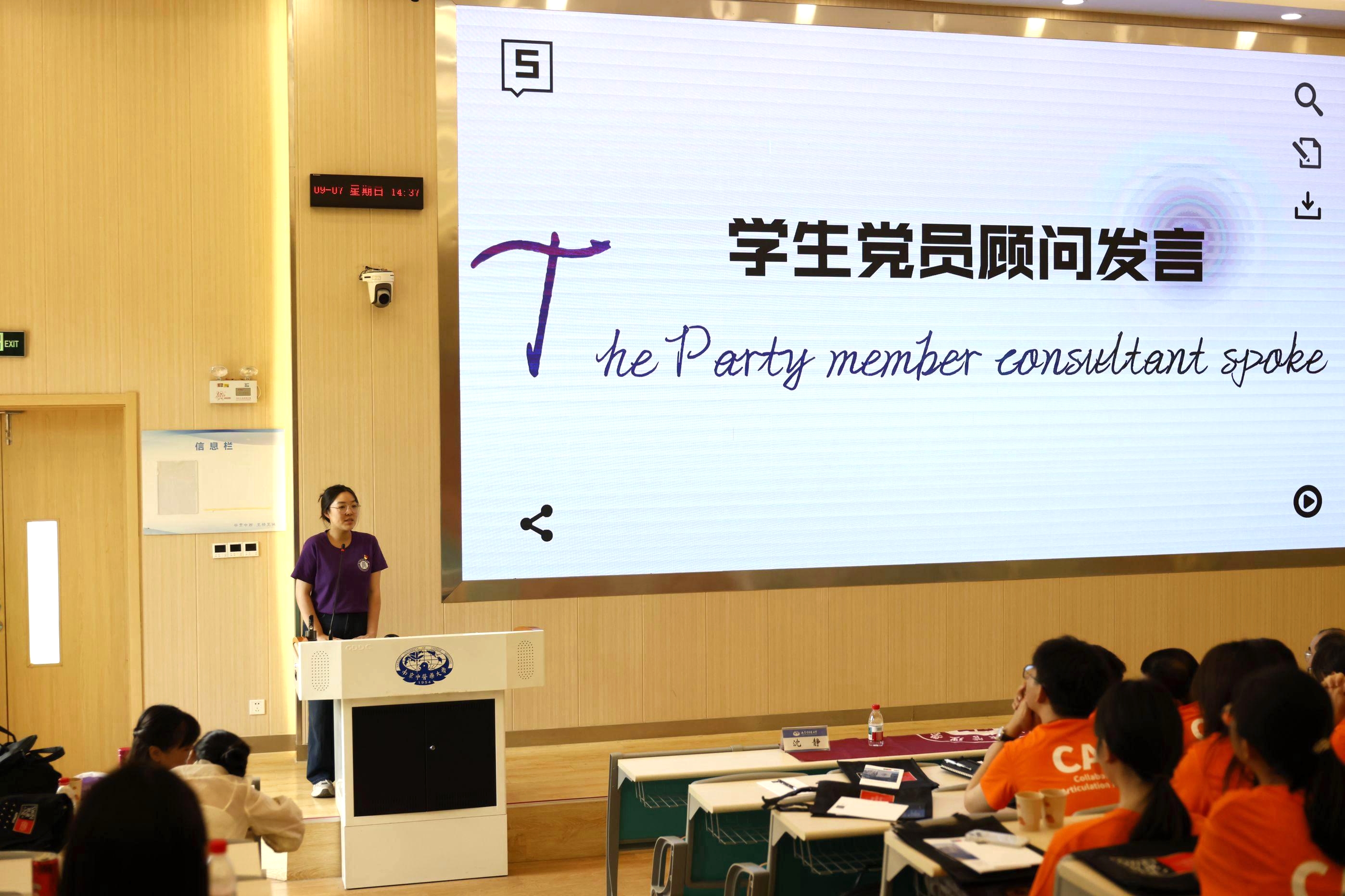 学生党员顾问、公管231班张乐涵同学分享了对大学生活的体会,鼓励新生主动适应、勇敢尝试、团结互助,在探索中找准方向,在集体中共同成长。班会还通过随机互动增强了参与感,加深了新生对校园文化与规章制度的理解。
