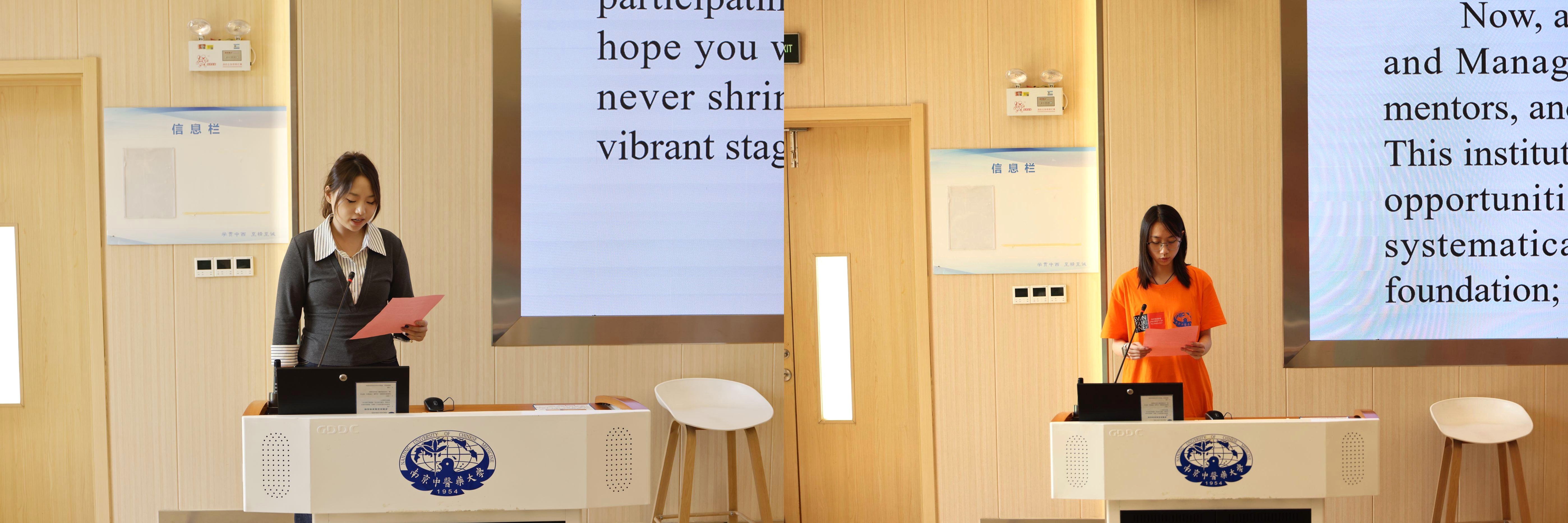 2024级夏语晗同学作为在校生代表发言,从专业学习、外语提升、视野拓展与实践参与等方面分享经验,鼓励新生夯实基础、勇于尝试,全面提升自我。2025级新生代表陆梦菡结合赴澳研学经历,阐述了“知行合一”与团队协作的重要性,呼吁大家珍惜时光、敢于突破,努力成为有理想、肯奋斗的新时代卫管人。