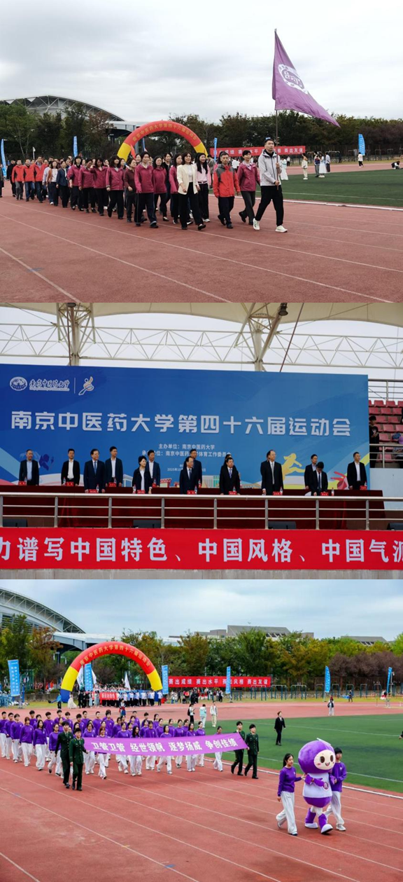 10月17日8:30,南京中医药大学第四十六届运动会在仙林校区西操场隆重开幕。秋风中彩旗飘扬,铿锵有力的运动员进行曲响彻校园。来自卫生经济管理学院的师生代表们迈着整齐的步伐入场,坚定的目光折射出信心,高亢的口号张扬着激情。他们将带着昂扬的精神面貌和蓬勃的朝气在赛场上书写热血篇章。