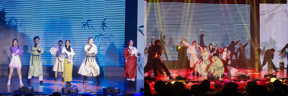 一段节奏带感的流行舞串烧惊艳亮相 —— 学院集结仙林、泰州两校区的舞蹈爱好者,共同演绎《Like Jennie》《Drama》《Diamond》,活力四射的表演瞬间引爆全场,尽显两校区学子朝气蓬勃、自信飞扬的风采。