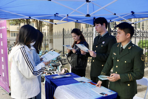 青春报国:戎装追梦,强军担当挺膺时。现场同步开展征兵政策宣讲,退役士兵骨干化身“宣讲员”,用朴实真挚的话语分享军营里的成长与蜕变、责任与担当,并围绕同学们关心的征兵条件、服役待遇等问题,进行细致解读、耐心答疑。鲜活的故事、滚烫的初心,深深打动了在场每一位同学,把国家安全与国防教育深度融合,厚植青年学子的家国情怀,青春报国的种子在心中悄然扎根、蓬勃生长。